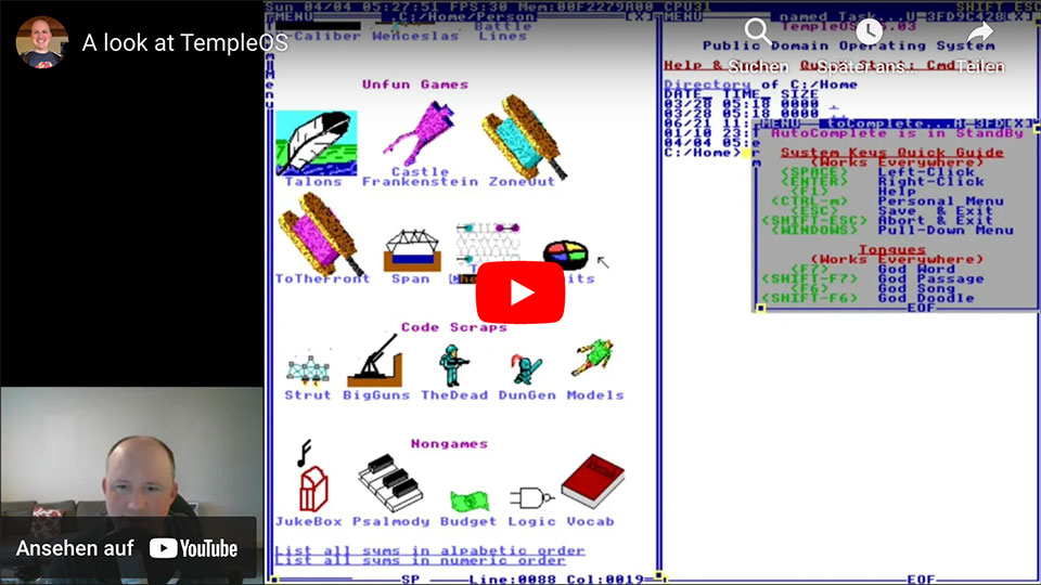 We take a look at TempleOS, a text- and graphics-mode hybrid OS written in HolyC, a programming language also created by the creator of TempleOS.