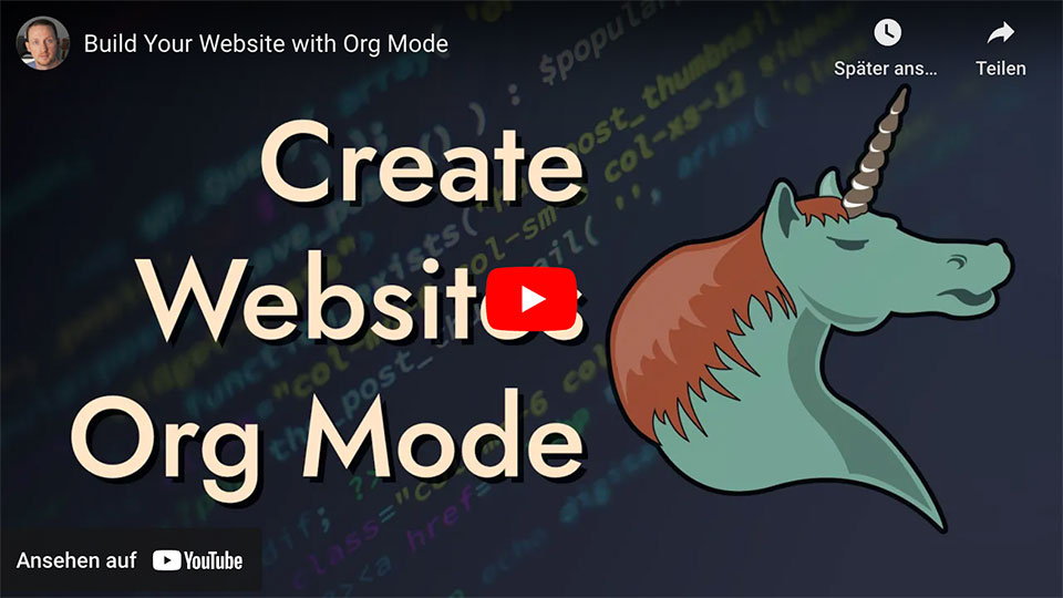 In this video, I’ll show you how to get started using Org Mode to build a static website from a folder of .org files! We’ll do this by creating an Emacs Lisp script that can run separately from your Emacs configuration, even on CI systems like GitHub Actions or SourceHut Builds for full publishing automation. I’ll also show you how to improve the look of the generated site!