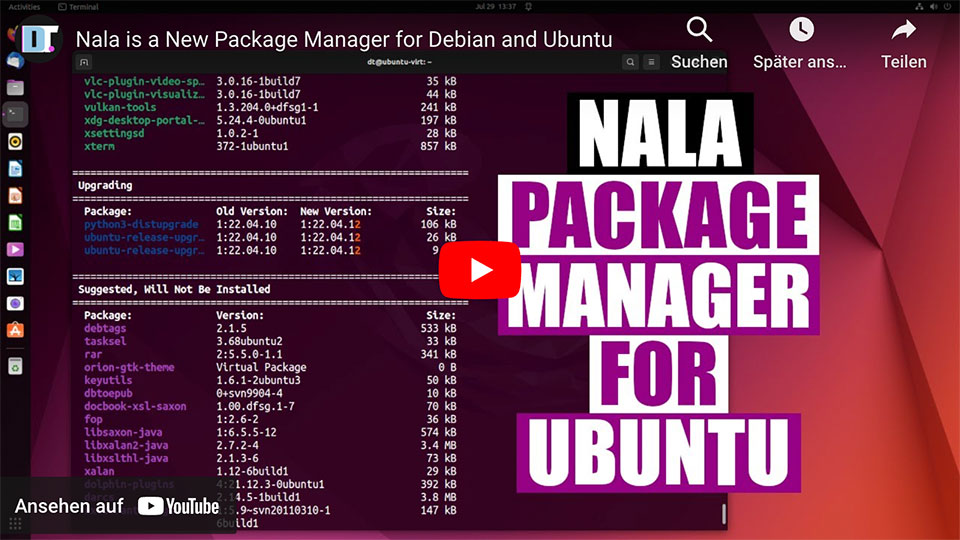 Nala is an apt frontend for Debian and Ubuntu and distros based on them. Why use Nala over apt? Nala has some really fancy output and offers faster installs via parallel downloading. In this video, I will install Nala with Pacstall. Then I will show some of the basic Nala commands.