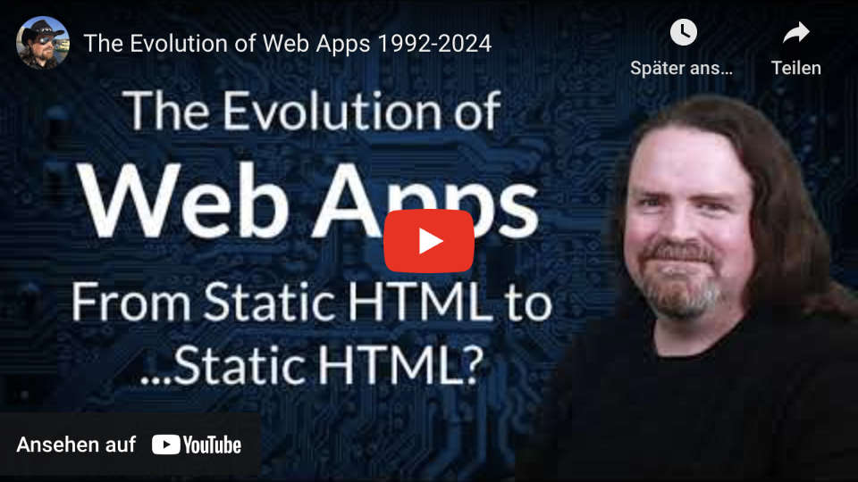 Just because there’s a new way to do something doesn’t mean the old way doesn’t work. In this video, we’ll look at the history of web apps, from static HTML, to server-side rendering, applets, plugins, XMLHttpRequest, AJAX, single page apps, web assembly: where did all these patterns come from? What fundamental innovations made them possible? And perhaps most important, how many of them are still relevant in 2024?
